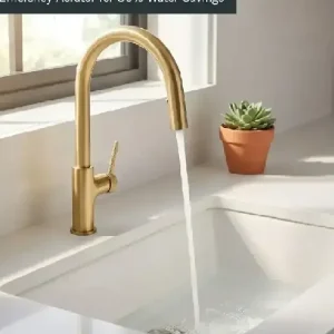 这款现代拉丝金厨房水龙头是追求高端、优雅且性能可靠的房主的完美选择